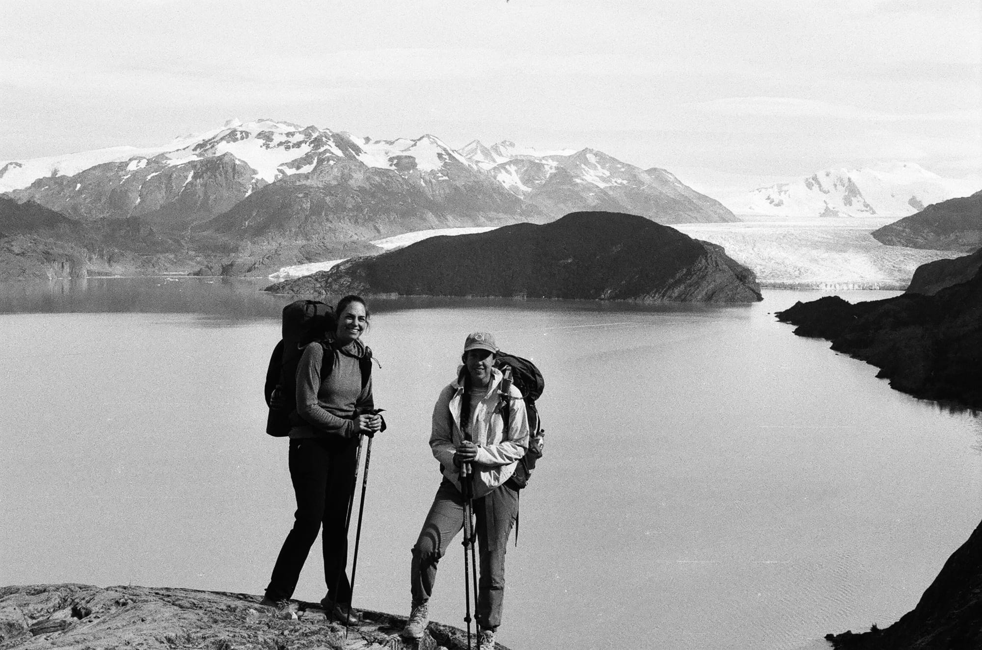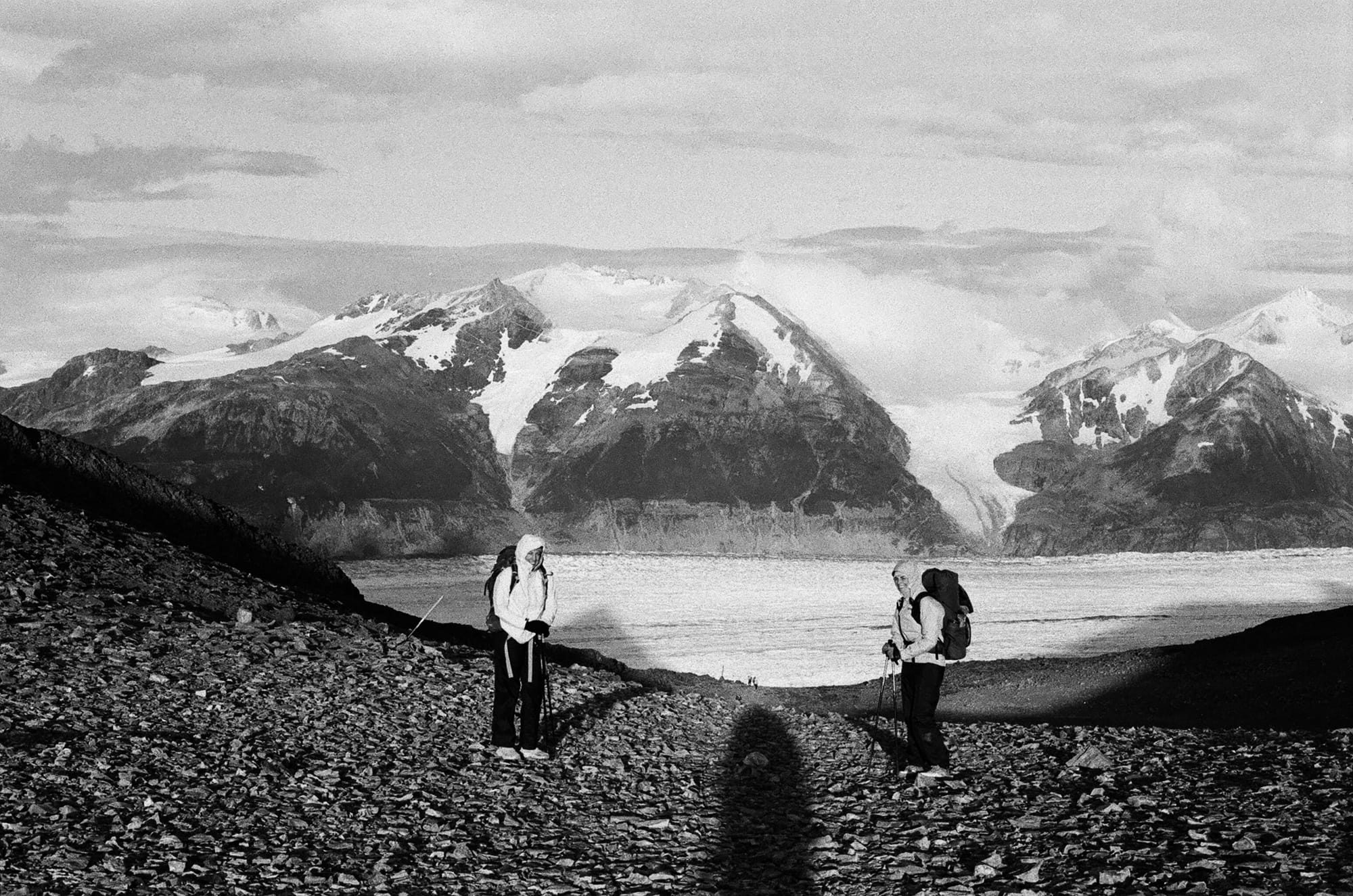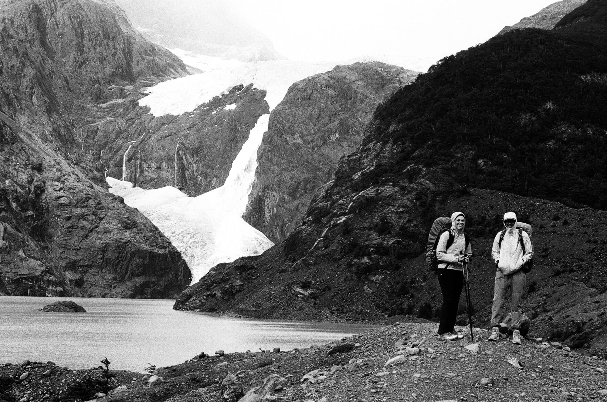 Luckily, the tent splint seemed to be doing its job as we woke up in an intact tent. Our third day was shorter, about 8 miles, but the forecast was a bit grim. We had a climb west out of the valley and the first 6 miles or so were reasonably protected in forest. However, as we exited the trees and continued our ascent, our last 2 miles were very exposed and we were pelted by rain, hail, and wind. This was our first chance at a close glimpse of Glacier Perros as it seemed to melt into a turquoise pool. We entered into Los Perros campground cold and wet, and unfortunately would stay that way for the rest of the night as there were no showers or much shelter here. It was a cold night and we were a bit nervous for tomorrow, which would be the hardest and most technical day over John Gardner pass. But, the weather forecast from the rangers sounded promising though this was hard to believe as we fell asleep to the soothing sound of hail on our tent roof…