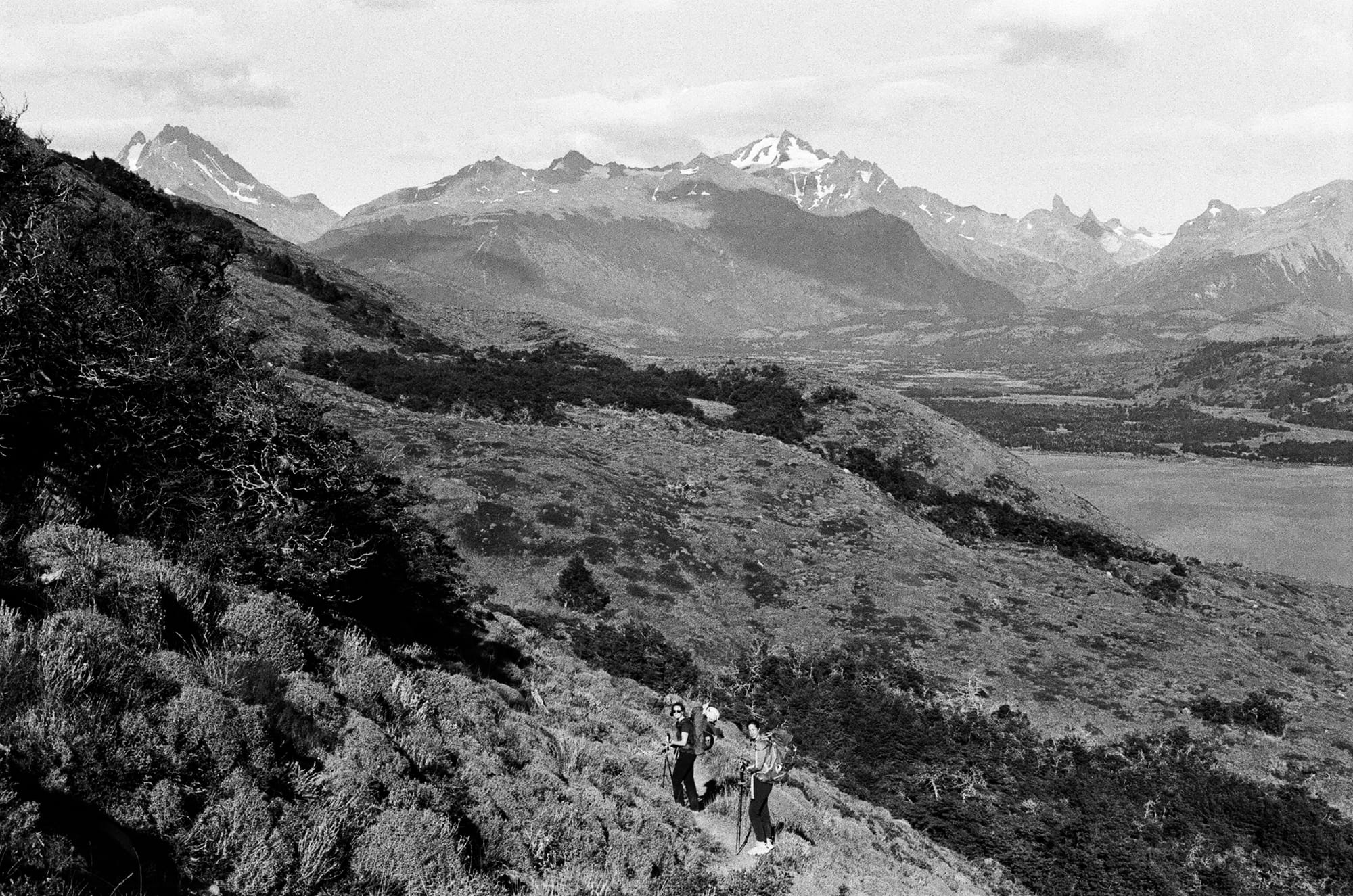 Our second day was about 12 miles to Dickson campground. We turned northwest and had sweeping views of the huge Lago Paine to the right and views of the north faces of the snow-covered peaks to our left. We walked directly towards the massive distant glacier almost directly west following the Rio Paine nearly the whole way. As we descended to camp that afternoon, we saw the picturesque grounds right along the bank of Lago Dickson. We were rudely reminded to keep moving and not gawk at the scenery by one of the largest and hungriest clouds of mosquitoes that we have experienced to date. This was our first camp shower and what a revelation it was. That, and the 2-for-1 glasses of Malbec, really rallied our spirits. We also began to feel some camaraderie with our fellow hikers as we realized that they would be the same faces around us for the next week as we headed the same way over mountains and valleys.
