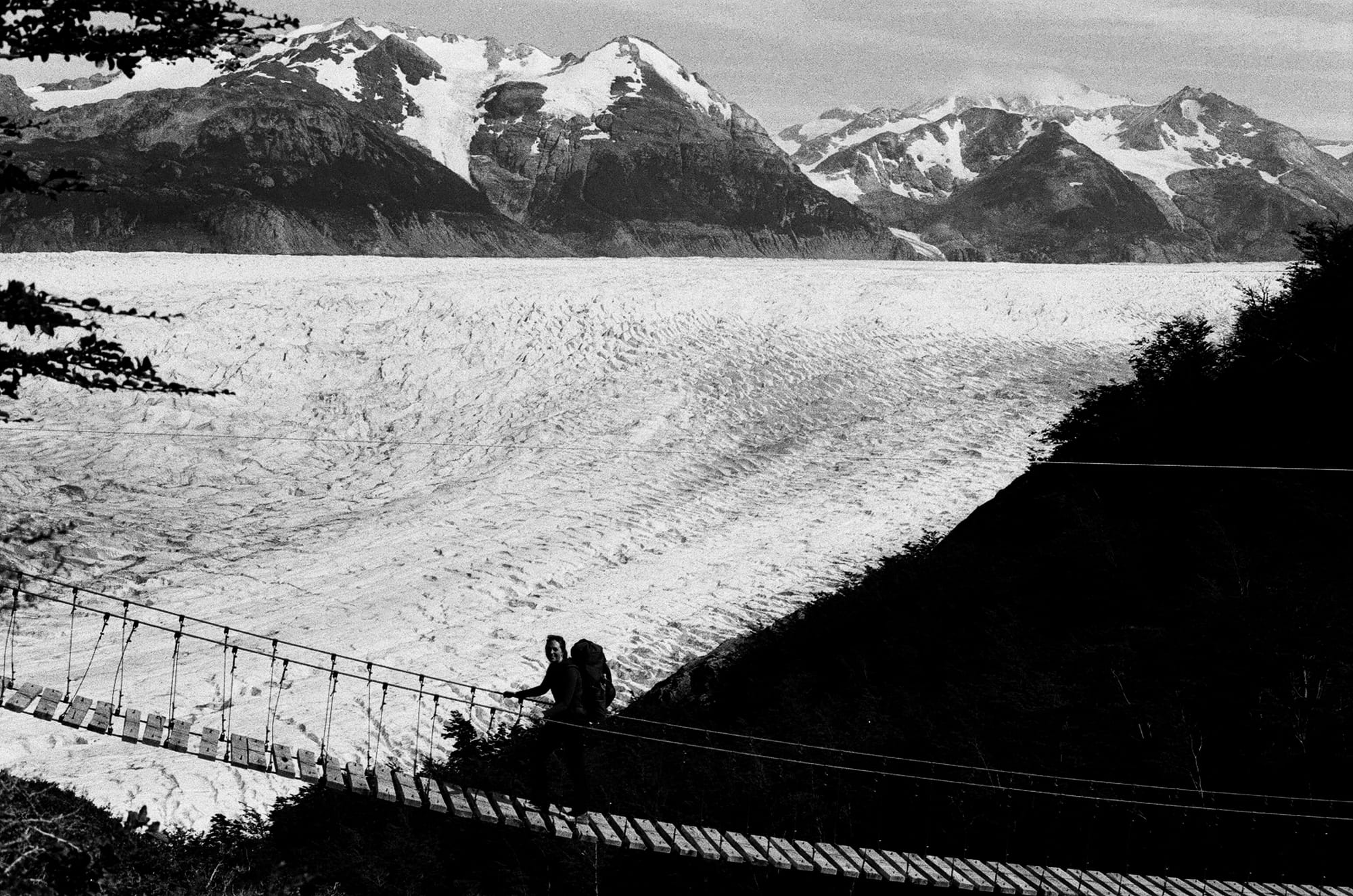John Garner Pass is not one that should be taken lightly. Weather can change quickly and it is so exposed that if there is enough wind (commonly over 80 mph) or a blizzard it can be impassable. A few months before our trek, we read about 5 people who died on this pass from hypothermia after getting caught in a storm. In that circumstance, it was compounding bad luck that led to their deaths. In Chile, voting is mandatory and there are fines if you do not vote. In November, on Election Day, the rangers from Torres del Paine all took the day off so that they could vote and not be fined. With no rangers to close John Garner Pass due to the weather, the backpackers at Los Perros campground were urged by campground staff (not rangers) to continue west since there were more hikers coming in that day behind them. So, a group of about 15 headed up and encountered severe wind and whiteout conditions without shelter and sadly 5 did not survive the day. I say all that to give some context as to why we were cautious about today’s route. The best weather window was early so we woke up at 4:30 am, strapped our headlights on, and headed immediately into a steep, dark ascent. We joke that headlamp miles don’t count. Your world is really confined to the 3-foot radius of illumination in front of you and without the visual evidence of the steepness you are expected to conquer, your mind can wander. Just as we were boulder-hopping to the crest of the pass and the forest gave way to barren rock and ice, the sun rose in pinks and oranges and we had our first glimpse of the vast expanse of the Southern Patagonia Icefield. It was hard for us to comprehend the size of it as we could not visualize the start or end of the flowing ice. It is the 3rd largest reservoir of Earth’s fresh water. We felt very small in those moments up top. We were prepared to get annihilated by wind as we reached the saddle but to our surprise, there was nearly no wind as we started the endless descent back into the Magellanic subpolar forest. We walked along the Grey Glacier for miles, taking suspension bridges over avalanche slides and rivers of snowmelt. The descent is what really killed us and we got to our next campground, Grey, quite exhausted but having completed the most dangerous portion of the hike. It was great weather and the sun was shining so we enjoyed some beers and pizza with our fellow hikers and hot showers to boot.