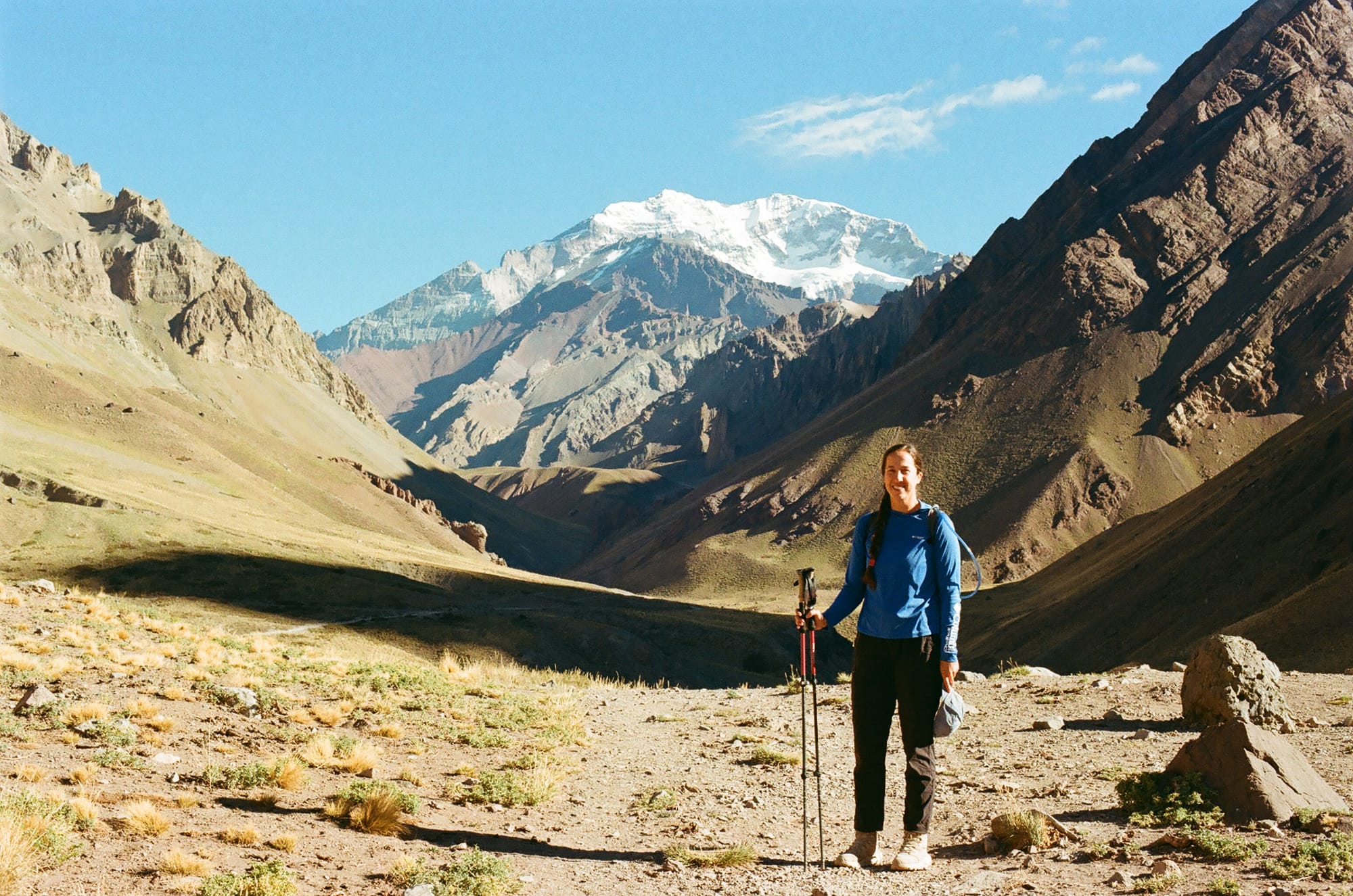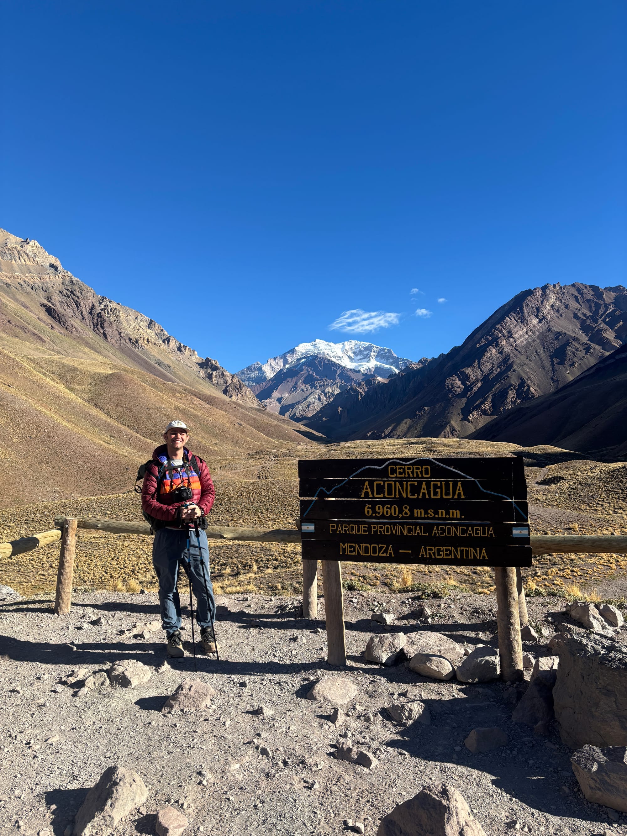 We had a 2 hour drive further northwest to Aconcagua National Park where we started the hike to the base camp of Mt. Aconcagua, one of the 7 summits and the tallest mountain in South America. The first steps on the trail were shocking and we were immediately short of breath at this new altitude- just shy of 10,000 feet at the trailhead and we had a slow pace over the next 4.5 miles along the Horcones River. It was a steady climb up to Confluencia base camp at 11,500 feet and while not technical or exceptionally steep, the altitude made us feel this one. The near constant view of Aconcagua was worth the effort and it was also neat seeing base camp off-season (it is fall here now and too late to start the 21-day trek to the summit of Aconcagua).