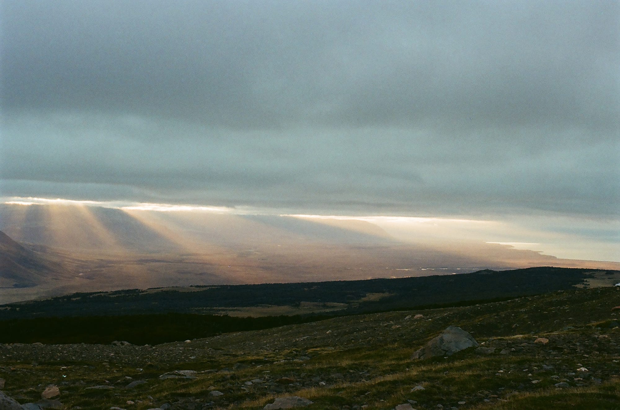 Our last long hike in El Chalten was to Loma del Pliegue Tumbado which leads up to Cerro Solo but offers views looking over Laguna Torre, Cerro Torre, and Fitz Roy from a different angle. We again planned for sunrise near the summit so we had an early morning and 5.5 miles steady ascent to the summit. The forecast here promised clear skies but unfortunately as the sun rose, we were greeted with a soupy fog that covered all view points. The hike was still cool and we had no wind which was a rarity there, and we were very grateful to have logged a lot of miles the previous two days to get the views that we came here for. Just as well, because our last few days in El Chalten were stormy, rainy, cloudy, and cold. It is just a matter of pure luck to get any decent string of days here, even in peak summer!