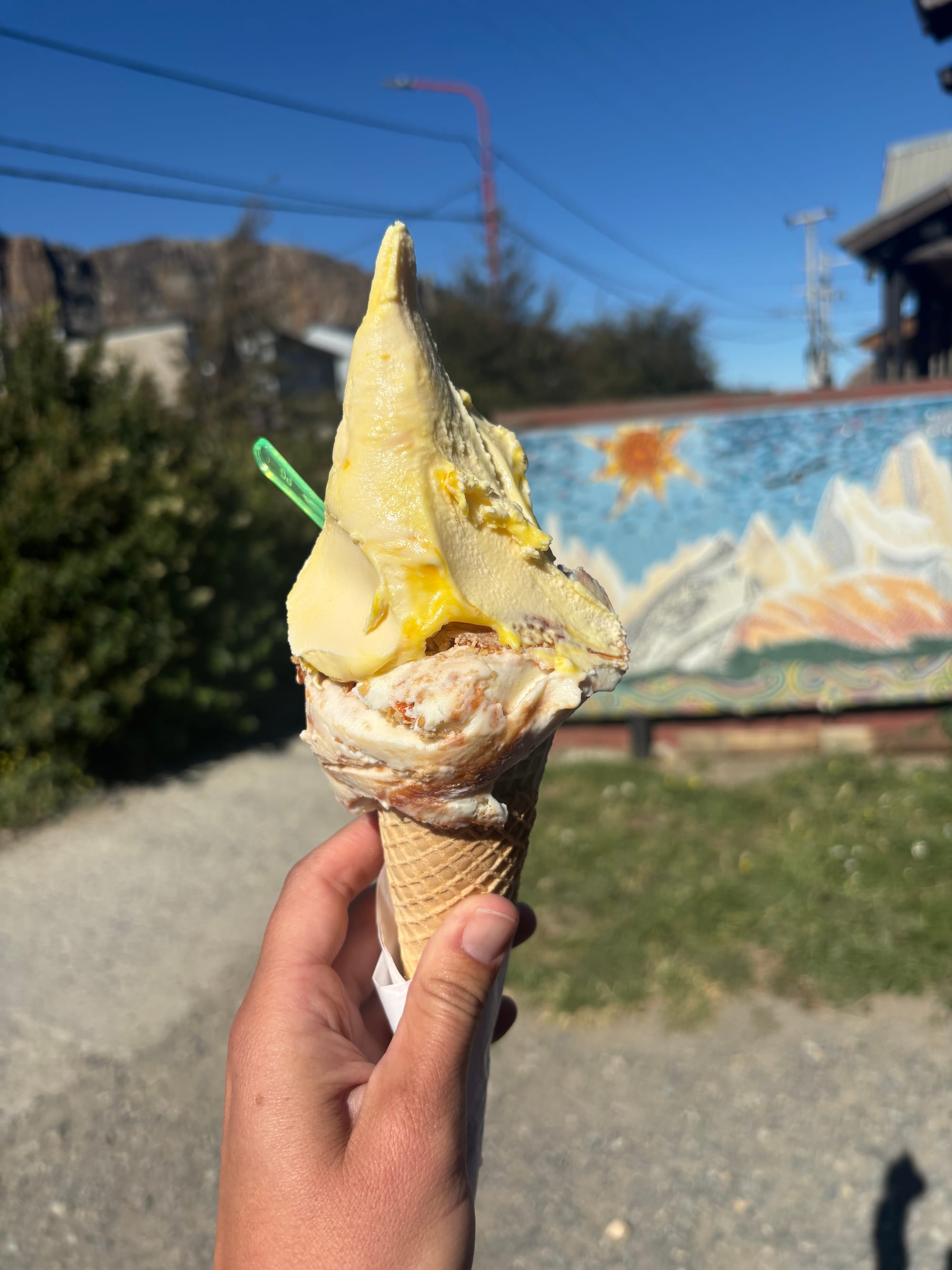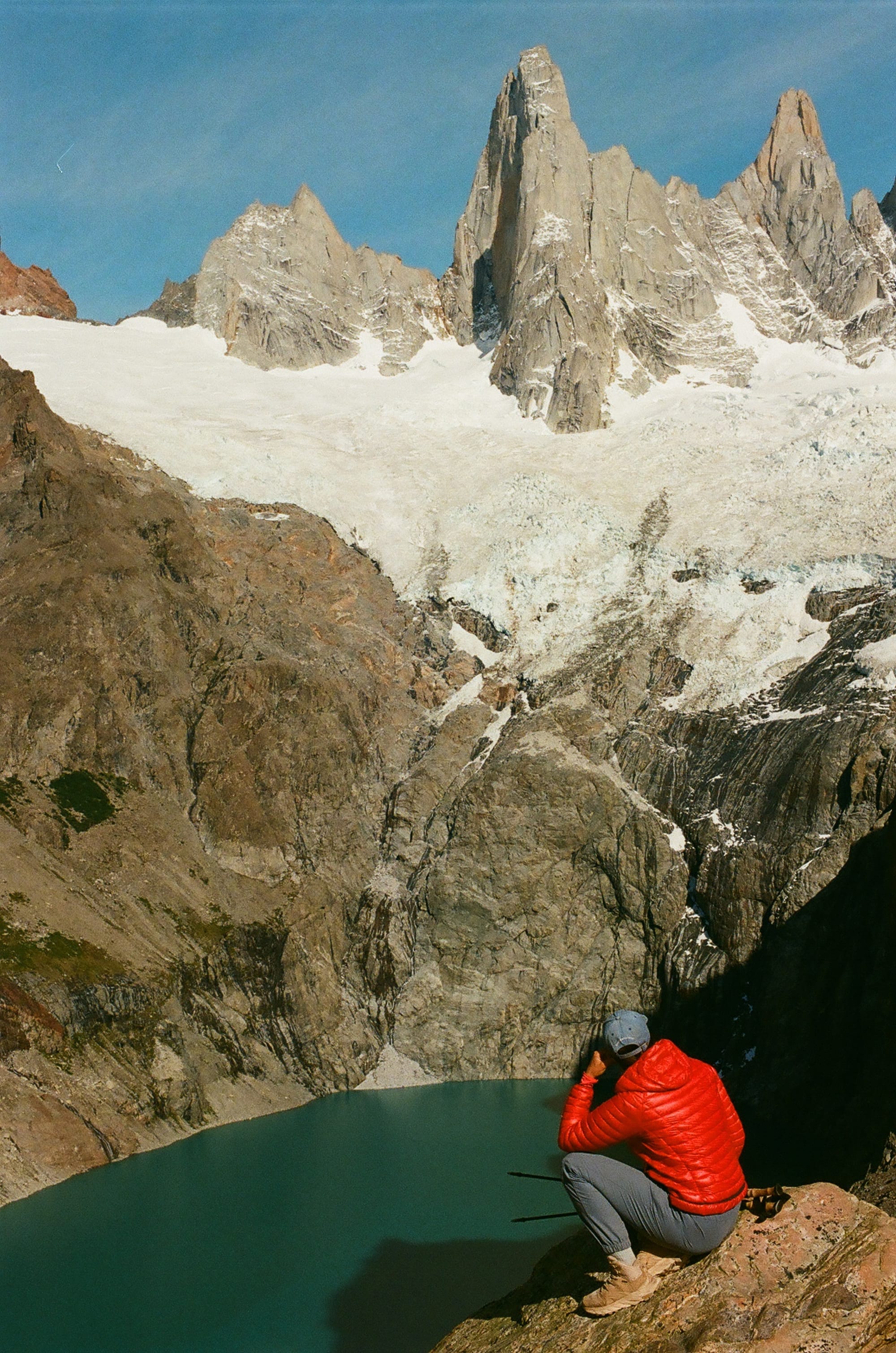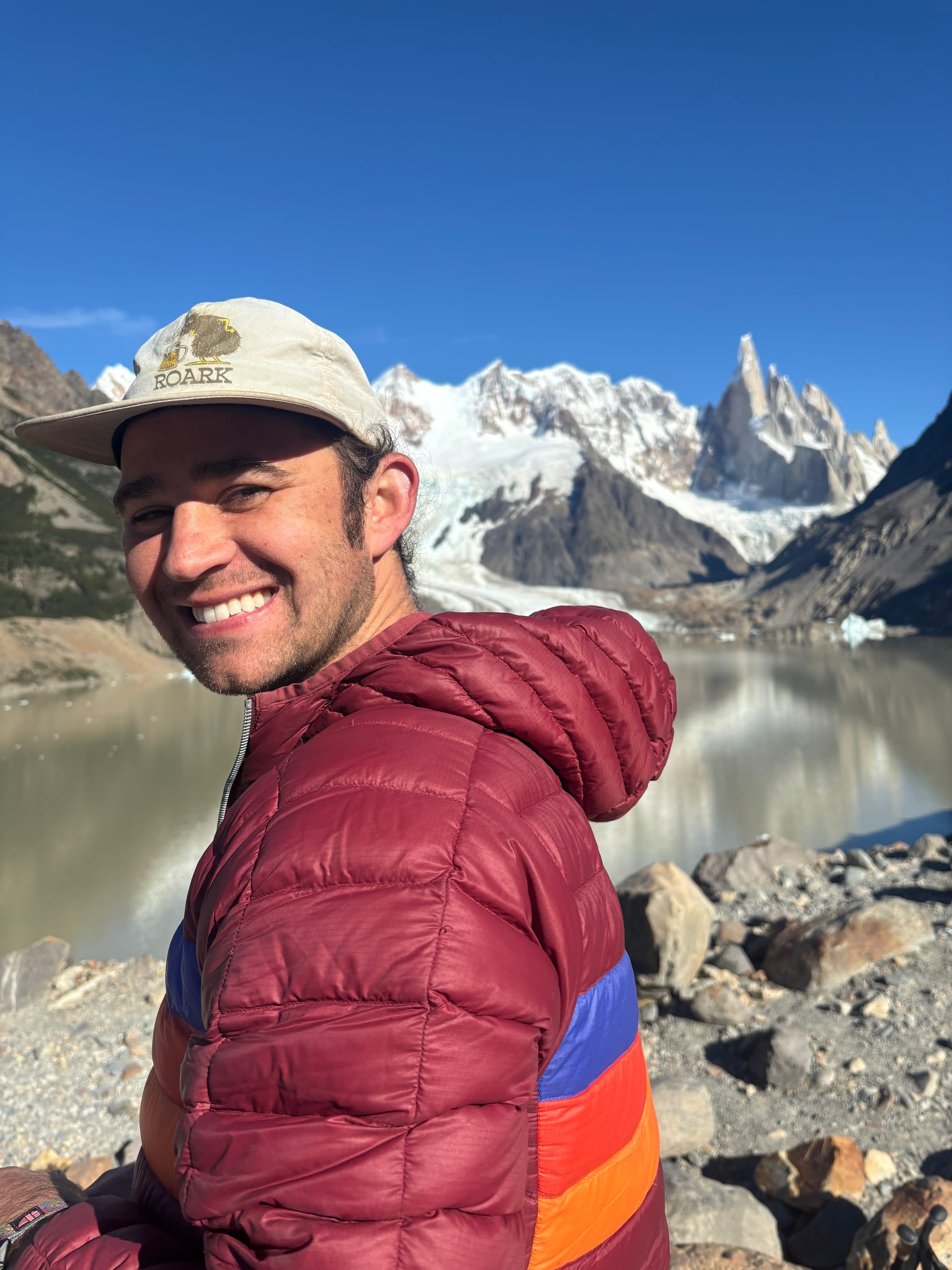 Our first hike in good weather was up to Fitz Roy via Lago de Los Tres because this offered the most iconic views. We started at about 6 am and saw the sunrise over Fitz Roy from afar- a striking blue bird day! By the time we made it to the viewpoint, it was time for lunch and we ate on the shores of Lago de Los Tres with Fitz Roy looming above us. The iconic peak stands proudly and boldly above Lago de Los Tres with the a glacier to the east- Piedras Blancas- spilling onto the shores of the lake. We also wanted to make sure to see Cerro Torre, so we descended and took the cutoff past Lagos Hija and Madre instead of the way we came and were treated to our first views of Cerro Torre in the distance. Cerro Torre is sharper and thinner than Fitz Roy, like a church steeple, and although not as formidable as Fitz Roy, it was still profound to see. It has an impressive glacier as well, Circo de los Altares, which leads to the Southern Patagonia Icefield, the same 350 km icefield that we stared at, slack jawed, on the O-trek, a 9-hour bus ride and 4 days hike away. We probably could have done ourselves a favor and packed another meal but instead we hobbled back into El Chalten after a 19-mile day quite peckish. Luckily, we found an ice cream shop with some incredible passionfruit gelato. It may be the mileage talking, but we can’t recall a better scoop anywhere.