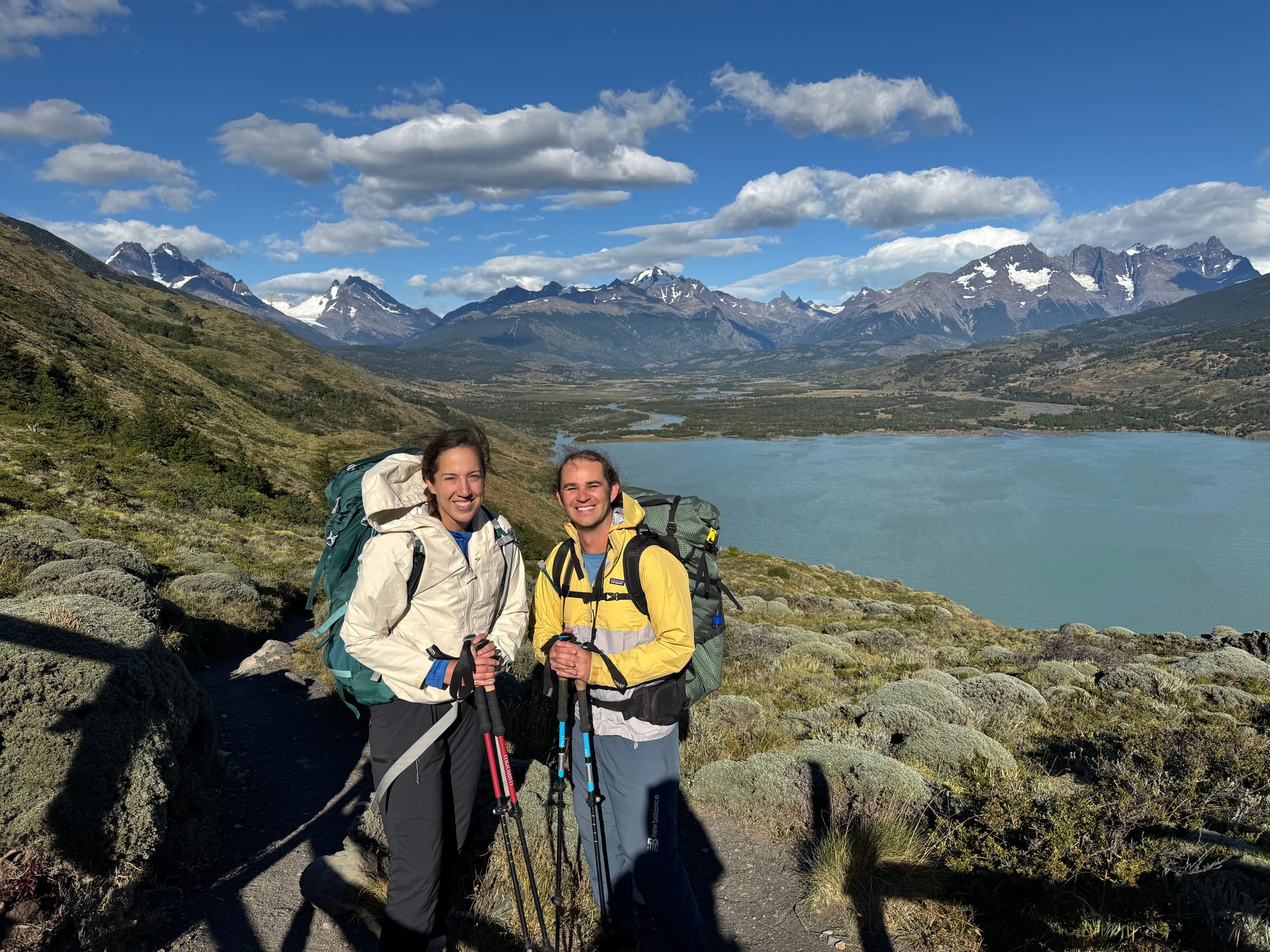 The O-trek is a 75-mile loop through Torres del Paine national park with roughly 17,000 feet of total elevation gain. It must be walked counter clockwise without skipping camps but it can be done on different levels and budgets. For instance, you can literally sleep in a yurt every night and be fed three hot meals a day so the only thing you have to carry is water and clothing. But, that can run you like $15,000 per person. So, we opted for the most affordable (also hardest to book) option of carrying all of our food and clothing and gear and sleeping in our own tent every night. But believe me, we really did enjoy the backcountry amenities even for campers. There were showers (some even hot!) in most campsites, along with beers from the kitchen. It was a shock to see these well-equipped campsites in the middle of nowhere and something that we had never experienced before while backpacking.