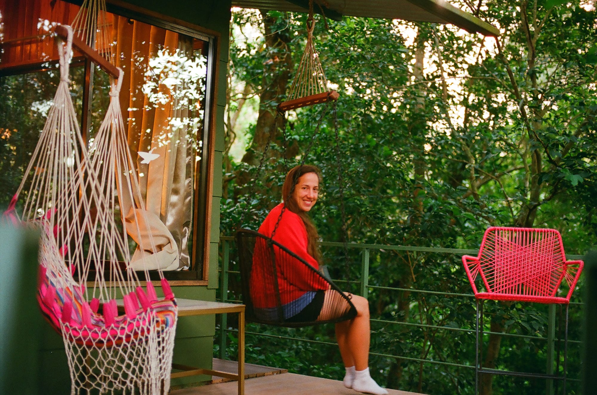 Em in a hammock in Atenas and a sunset view from our Airbnb