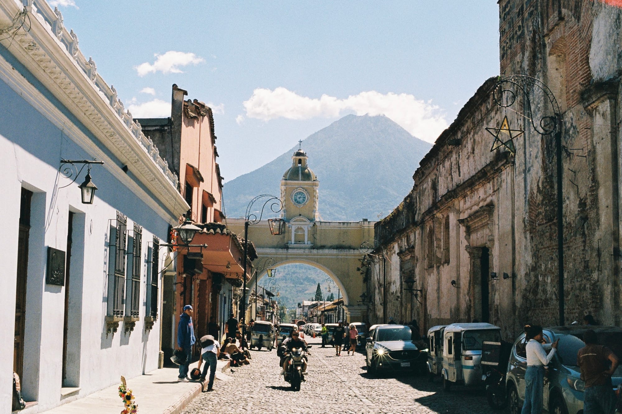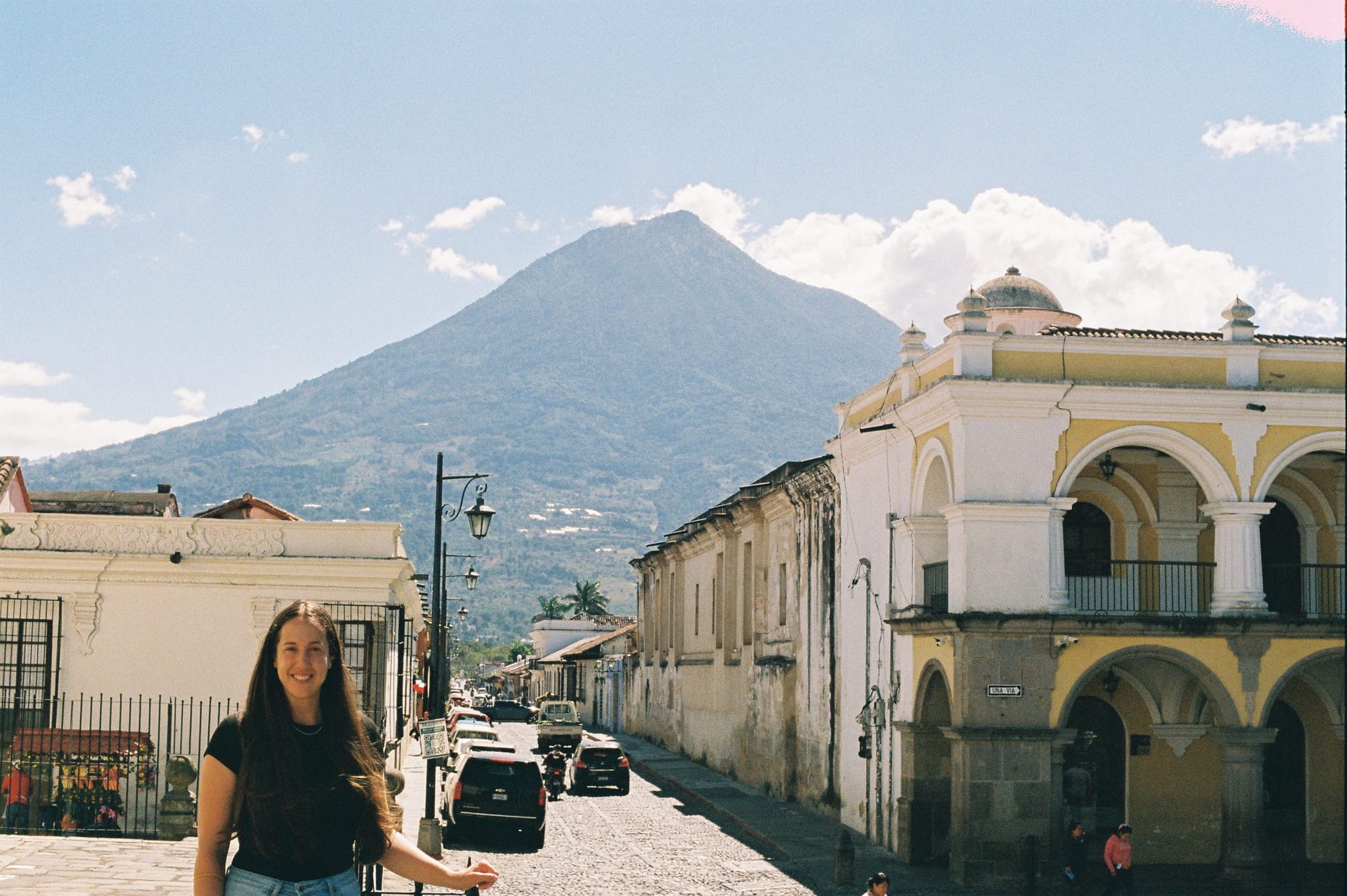Our next stop was Antigua, which was an easy 1 hour Uber ride from Guatemala City. We were pretty stunned by the beauty of the city as soon as we arrived. You can see three volcanoes immediately looming over the brightly painted buildings, with Volcan Agua being most prominent to the South and framed by the famous Arco de Santa Catalina archway. Volcan Fuego and Volcan Acatenango sit just to the Southeast and Volcan Fuego is nearly constantly active with frequent belches of gas and smoke visible from the city all day, and at night it offers an incredible display of erupting glowing orange lava.