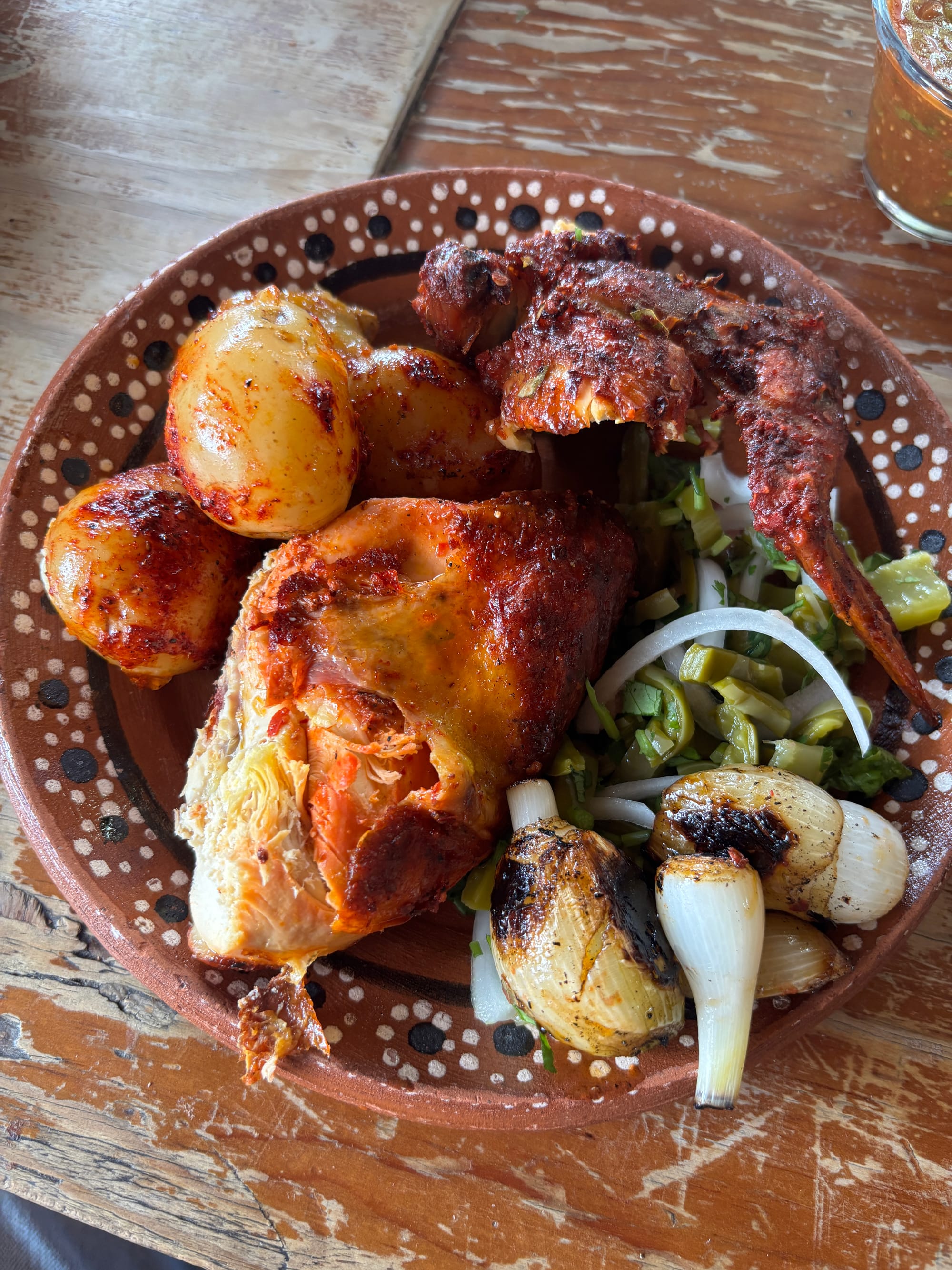 To list all of the excellent food in Mexico City is far too great a task, but some of the highlights were of course Tacos Los Caramelos (I think we went here 3 times…), pastries at Panederia Rosetta and Odette, tacos al pastor at El Califa, Clandestina Mezcaleria for muchas besitas of mezcal, and a spit-roasted half chicken at Rosticeria Los Pioneros. The honorable mention goes to Finca Don Porofino on the 8th floor of the Sears building for the shittiest latte but the most impressive view of Palacio Bella Artes.
